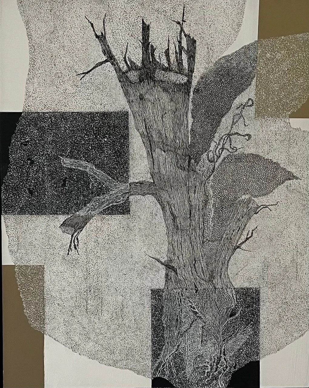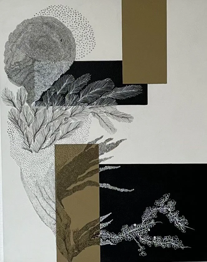 Mit meinen abstrakten Zeichnungen untersuche ich die Beziehung zwischen Natur und urbanen Räumen. Das Zusammenspiel von geometrischen Flächen und organischen Formen macht die Spannung zwischen Natur und Künstlichkeit greifbar.